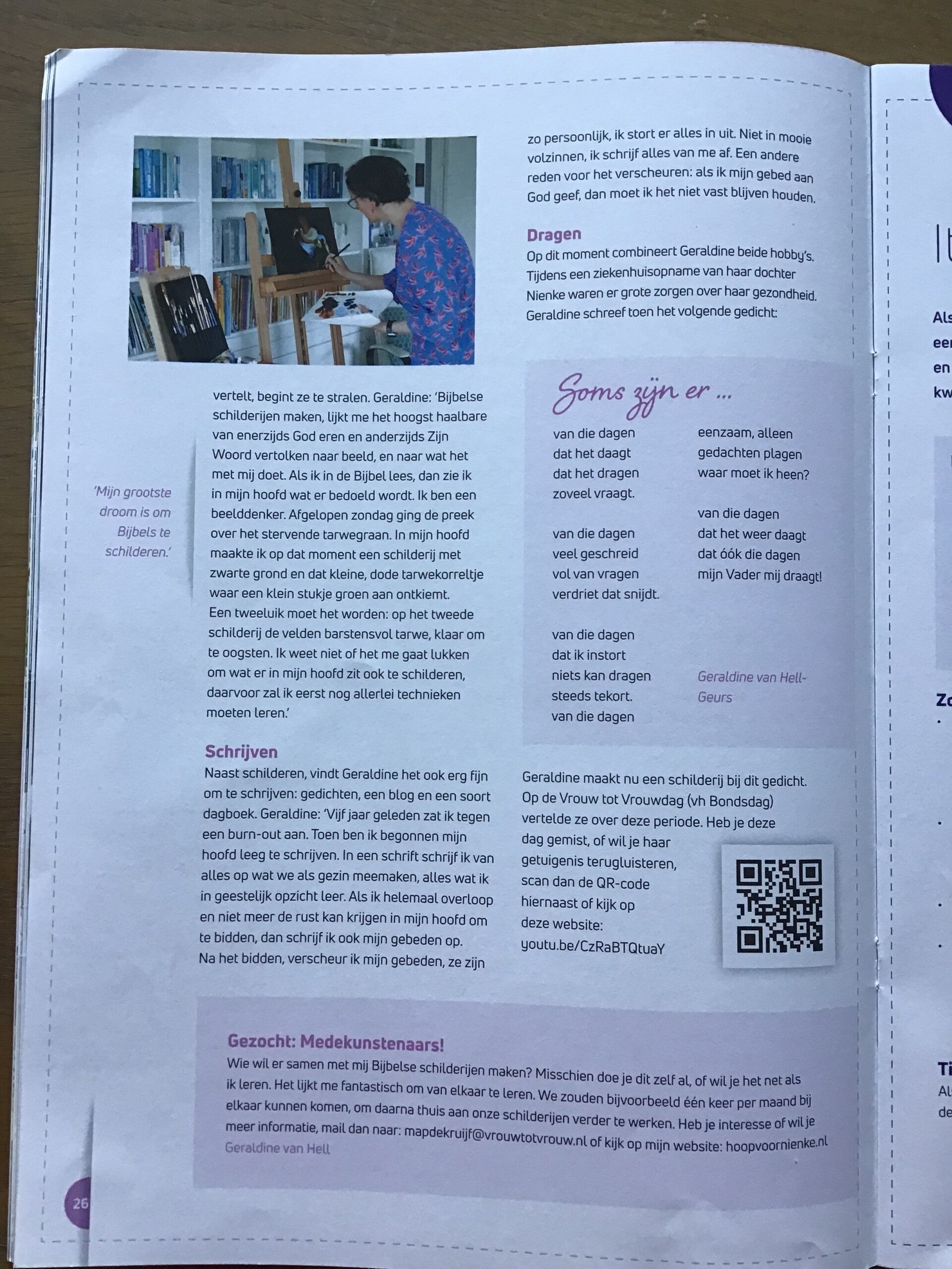 Een aantal maanden terug ben ik geïnterviewd voor het hervormde vrouwenblad Vrouw tot Vrouw. Hieronder het artikel!