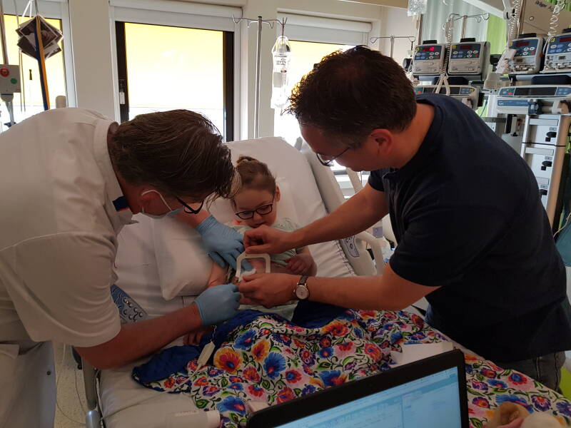 Einde van de middag kwam er een verpleegkundige van special-care alvast kennismaken en om te horen waar ze op moeten letten bij Nienke. De ademhaling van Nienke is een groot probleem maar daarnaast zij er ook allerlei andere dingen die dagelijks gemonitord moeten worden. Dit maakt de zorg erg complex. Tijdens zo'n overdracht word er vaak gezegd, "moeder weet het allemaal wel". Dit is vaak ook zo maar het legt vaak een enorme druk op mij om continu aanwezig te zijn. Zeker nu in een nieuw ziekenhuis. In het WKZ komen wij al zo lang dat het vaste team van Nienke haar ook al erg goed kent. Zij zien ook wel als ze niet fit is en nemen dan ook stappen om extra controles te doen. Dat moeten wij hier in Groningen weer helemaal opbouwen. Daar gaat erg veel energie in zitten. Gelukkig heb ik erg korte lijntjes met de artsen in het WKZ om bij twijfel te kunnen overleggen. Zij zijn tenslotte degenen die Nienke het beste kennen binnen hun eigen specialisme.