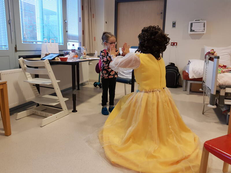 Vandaag heeft Nienke weer lekker een uurtje school gehad van de WKZ-juf. Hier geniet zij enorm van. Ondanks dat zij weinig puf heeft zal het niet in haar opkomen om school af te zeggen. Zo ook het knutsel-uurtje met de pedagogische zorg. Wanneer zij les krijgt en knutselt heb ik even een momentje voor mijzelf. Dit is in totaal anderhalf uur per dag. Verder ben ik met haar bezig. Alle zorg behalve de nachten doe ik zelf. Door de jaren heen is dit zo gegroeid en het is wel erg lekker. Wij liggen helemaal achteraan op de afdeling waardoor er niet continu andere patiënten langslopen. Het rustigste plekje ook tijdens de nacht. Het is een grote zaal waar voornamelijk grotere kinderen liggen dus eigenlijk hebben wij nooit een huilende baby op de kamer. Hoewel wij niet gaan doen alsof het fijn is om weer op Leeuw te zijn, zijn wij wel dankbaar dat wanneer wij hier moeten zijn wij dit plekje steeds krijgen.